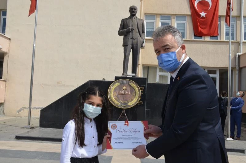 İlçe Milli Eğitim Müdürlüğü’nün oluşturduğu komisyon tarafından belirlenen derece yapan öğrencilere altın ödülü verilirken yarışmaya katılan tüm öğrencilere ise katılım belgesi ve çeşitli hediyeler takdim edildi.