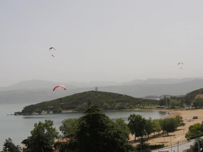 Yamaç paraşütçülerinin Karatepe’den, Eğirdir Altınkum plajına rengarenk paraşütlerle süzülmeleri ve şanlı bayrağı Eğirdir semalarında dalgalandırmaları ilgili ve heyecanla izlendi.
