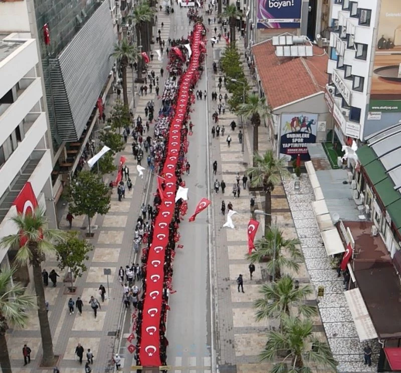 Denizli’de 19 Mayıs Atatürk’ü Anma ve Gençlik ve Spor Bayramı’nın 103. yılı kutlamaları çerçevesinde 103 metrelik bayrakla yapılan yürüyüş büyük ilgi gördü.