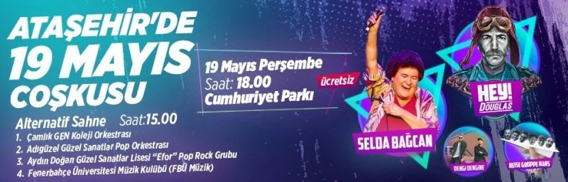 İstanbullu gençler 19 Mayıs’ta Ataşehir’de buluşacak. Cumhuriyet Parkı’nda yapılacak kutlamalarda amatör müzik gruplarının yanı sıra Alman rock müzik grubu Reise Gruppe Hans, muhteşem DJ performansıyla Hey Douglas ve sevilen topluluk Dengi Dengine sahne alacak. Finali Halk müziği ve Anadolu Rock’ın güçlü sesi Selda Bağcan yapacak.