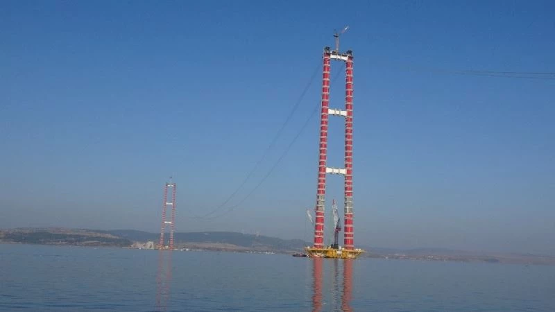 Dünyanın en büyük asma köprüsü unvanına da sahip olacağı ifade edilen köprünün ayakları 318 metrelik yüksekliğiyle 18 Mart Çanakkale Deniz Zaferi’ni simgeliyor. Cumhurbaşkanı Recep Tayyip Erdoğan tarafından 18 Mart 2017’de temeli atılan ve Çanakkale’nin Lapseki ilçesine bağlı Şekerkaya ile Gelibolu’nun Sütlüce mevkii arasında yapımı süren 1915 Çanakkale Köprüsü’nün ayakları 16 Mayıs Cumartesi günü Cumhurbaşkanı Recep Tayyip Erdoğan’ın videokonferansla katıldığı törenle tamamlanmıştı. 32 bloktan oluşan köprünün ayak yüksekliği 318 metreye ulaşmıştı.