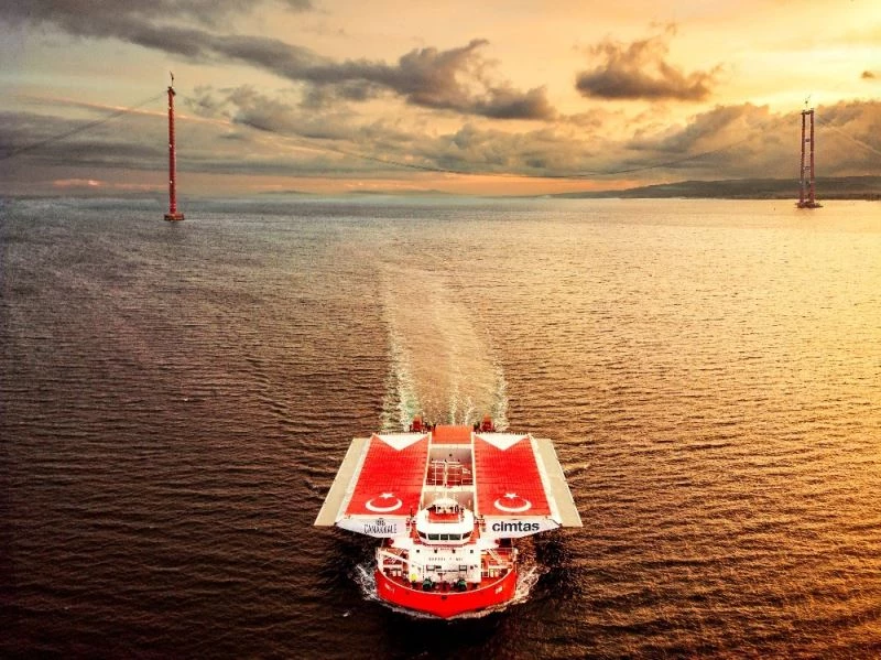 Dünyanın en büyük orta açıklıklı asma köprüsü olan 1915 Çanakkale Köprüsü’nün tanesi 700 ton ağırlığındaki mega blok tabliyelerin 4’üncüsü Çanakkale’ye geldi. Köprünün kulelerinin de imalatını gerçekleştiren Çimtaş, haftada 2 sefer düzenleyerek, toplam 70 sevkiyatla tabliyeleri Gelibolu’ya ulaştıracak.