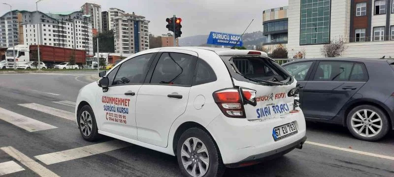 Zonguldak’ta özel idare ait kamyonla sürücü adayı aracı kaza yaptı. Kazada yaralanan olmazken maddi hasar meydana geldi.