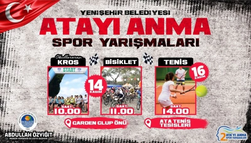 Belediyeden yapılan açıklamaya göre, geçtiğimiz yıl ilki düzenlenen ’Ata’yı Anma Spor Yarışmaları’nın ikincisini düzenlenecek. Bu kapsamda okullar arası kros yarışı, bisiklet yarışı ve tenis turnuvası yapılacak. Ortaokul düzeyindeki çocukların katılabileceği kros yarışları ve 5 kategoride düzenlenecek bisiklet yarışları, 14 Kasım Cumartesi günü Yenişehir Belediyesi Kros Parkurunda koşulacak. Yenişehir Belediyesi Ata Tenis Tesislerinde yapılacak tenis turnuvasının başvurular ise devam ediyor. 10 kategoride yapılacak turnuvaya katılmak isteyen vatandaşlar ’0552 305 09 34’ numaralı telefonu arayabilecek. Turnuvanın son başvuru tarihi ise 16 Kasım Pazartesi günü.