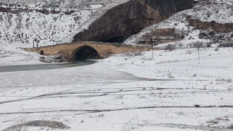 Adıyaman’da önceki gece başlayan kar yağışı birçok bölgeye beyaza bürüdü. Binlerce yıldır ayakta kalmayı başaran Cendere Köprüsü’nün etrafı kar yağışıyla beraber beyaza büründü. Kahta-Sincik karayolu üzerinde bulunan tek kemerli Cendere Köprüsü’nde, kar yağışının ardından kartpostallık görüntü ortaya çıktı.