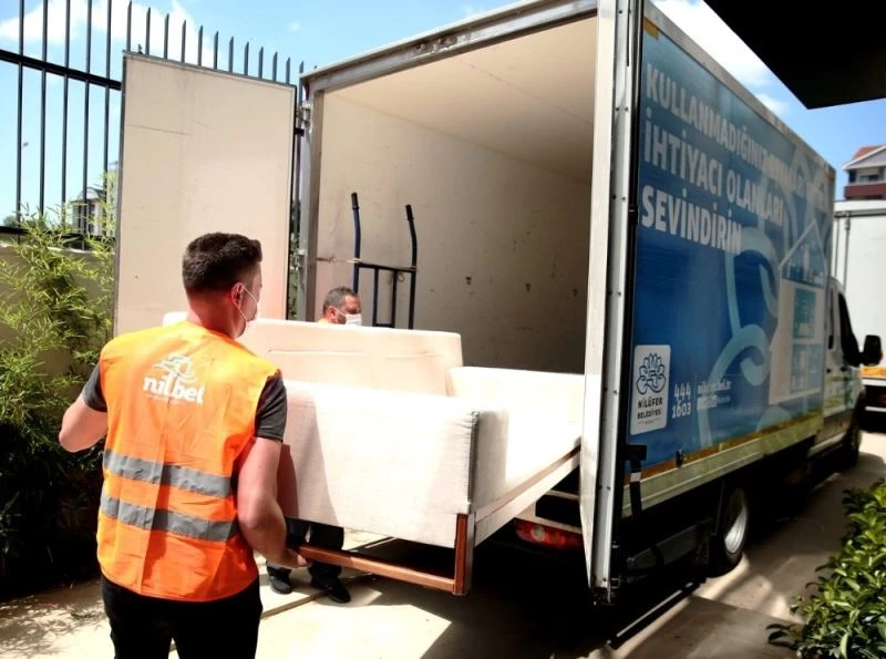 Kullanılabilir durumdaki ikinci el eşyaları vatandaşların talebi üzerine evlerinden alan Nilüfer Belediyesi, bu eşyaları ihtiyacı olan vatandaşlara teslim ederek değerlendirilmesini sağlıyor.