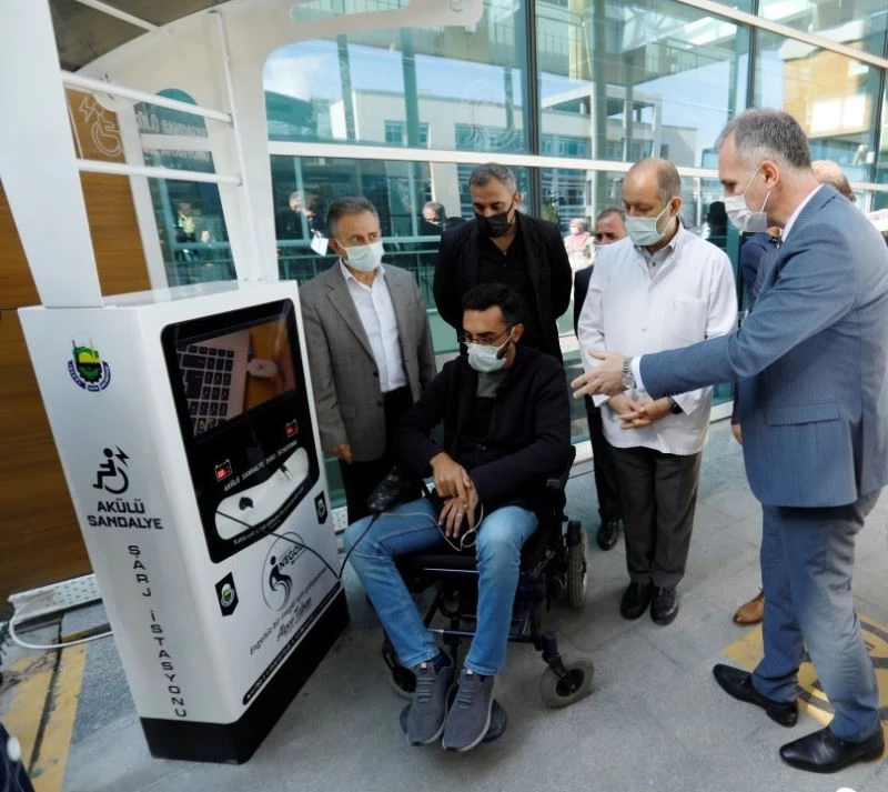 İnegöl Belediyesi, akülü araçlarıyla sosyal hayata karışan engelliler için şarj istasyonu projesini geliştirerek sürdürüyor.