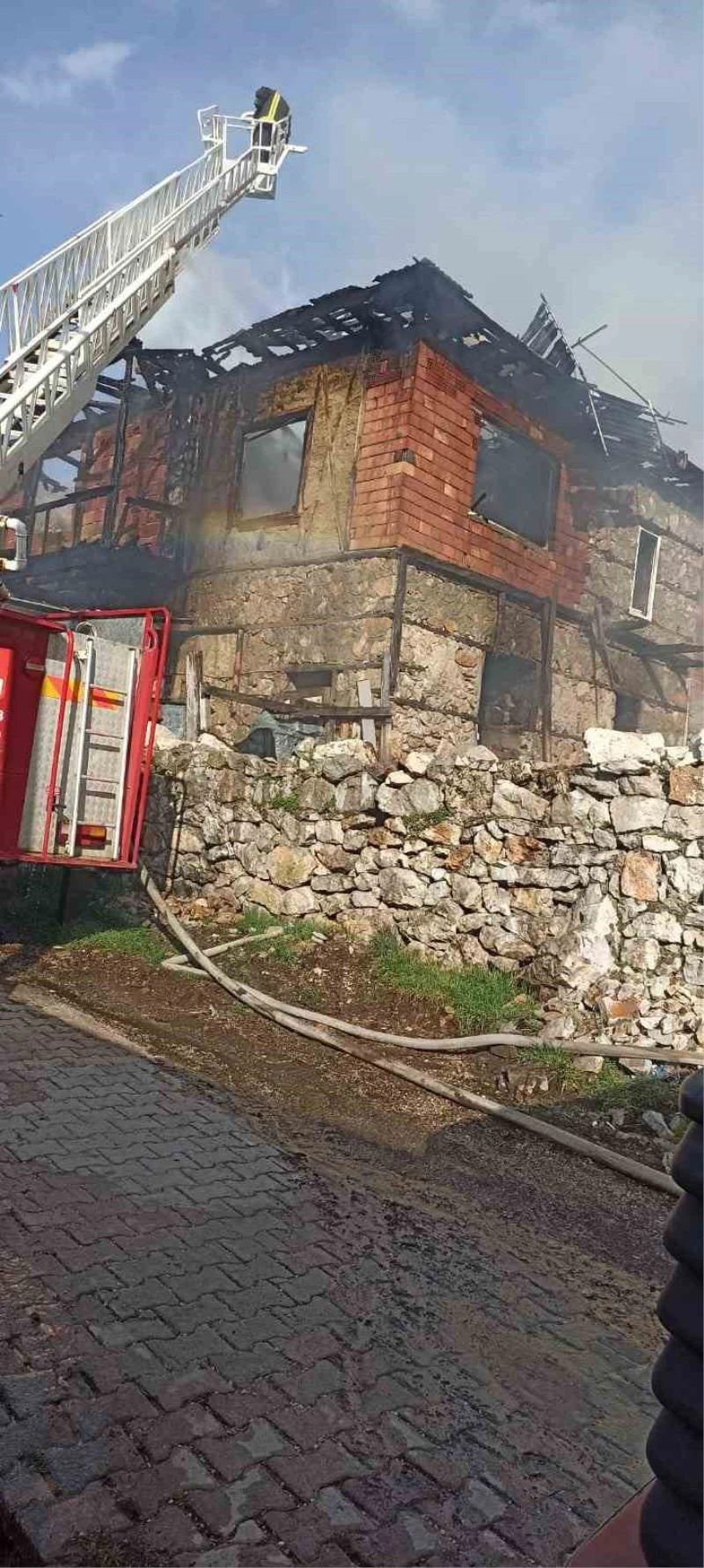 Burdur’un Bucak ilçesinde 2 katlı ev, çıkan yangında kullanılamaz hale geldi.