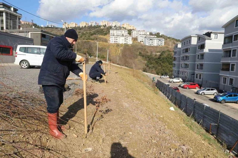 İzmit Belediyesi boş alanları yeşillendirerek 118 fidan dikti.