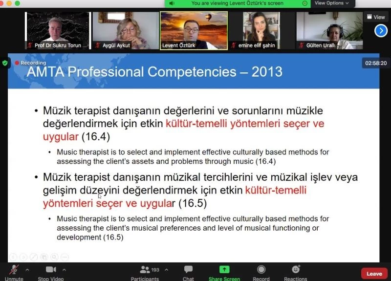 “Sağlık Bakanlığımızın öncülüğünde 2014-16 yıllarında yapılan yasal düzenlemeler çerçevesinde, müzik terapi uygulamaları birçok gelişmiş ülkede henüz bulunmayan “resmi” bir kimlik kazanmış oldu. Kültürümüzde derin kökleri olan bu kimliği evrensel geçerliliği olan bilimsel niteliklerle zenginleştirme yolunda, ilgili bakanlık birimleri ile birlikte çalışmayı sürdürüyoruz. Bu bağlamda, 2017’den beri müzik terapi konusunda araştırma ve uygulamaların yürütüldüğü Anadolu Üniversitesi TÜDAM Müzik Terapi Birimi ve 2016 yılından beri faaliyette olan UMTED olarak Dünya Müzik Terapi Günü vesilesiyle düzenlediğimiz ikinci sempozyumla, müzik terapi ve müzik tıbbının sağlığı ve özel eğitimi destekleyen bir disiplin ve uygulama alanı olarak gelişimine katkıda bulunmayı ve alana gönül verenleri, önde gelen ulusal ve uluslararası isimlerle bir araya getirmeyi amaçlamıştık. Bu amacın gerçekleştiğini görmek, bizim için gerçekten mutluluk verici oldu. Pandemi koşullarına rağmen, sempozyumumuz yüksek bir katılım aldı. Ulusal bir sempozyum olmasına rağmen aralarında İngiltere, Almanya, Hollanda, Azerbaycan, Yunanistan, İran olmak üzere yurt dışından da katılımcılarımız oldu. Bu tabloyu, yüksek standartlarda bilimsel etkinlikler düzenlediğimizin bir göstergesi olarak değerlendiriyoruz. Kurum yöneticilerimiz başta olmak üzere, tüm değerli katılımcılara ve konuşmacılara şükranlarımızı sunuyor, sempozyum sekreterimiz ve moderatörümüz E. Elif Şahin Karadeniz’in şahsında, organizasyona emeği geçen herkese teşekkür ediyoruz.”