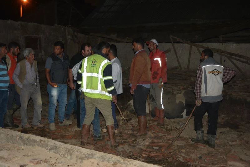 20 büyükbaş hayvan yağış nedeniyle çöken çatının altında kaldı