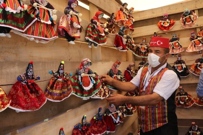Kayseri’nin Yeşilırmak ilçesine bağlı Soğanlı Köyünden el yapması bez bebekleri ile kutlamalar gelen Yavuz Aplak, Kültür Bakanlığı sanatçısı olarak Ahlat’ta bulunduğunu belirterek, “Bu bebeklerimiz Soğanlı köyüne aittir. Bu bebeklerin kıyafetleri ninelerimizin annelerimizin giydikleri kumaşlardan oluşuyor” şeklinde konuştu.