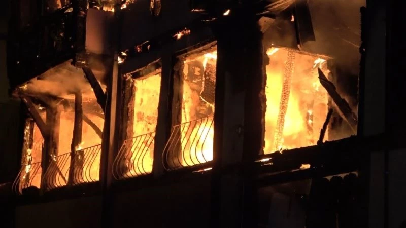 200 yıllık bina cayır cayır yandı, vatandaşlar sokağa döküldü