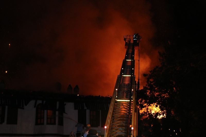 Edinilen bilgiye göre Tarihi Çarşı bölgesinde otel olarak kullanılan Osman Şenol’a ait 3 katlı tarihi konakta henüz bilinmeyen bir nedenle yangın çıktı. Kısa sürede hızla yayılan alevler iki asırlık binayı tamamen sararken, yangın bitişikte bulunan Ali ve Orhan Demirci’ye ait 3 katlı konağa sıçradı. İhbar üzerine olay yerine çok sayıda itfaiye, arazöz ve su tankerleri sevk edildi. Polis ekipleri patlama riskine karşı çevrede geniş güvenlik önlemleri alırken, iki saatlik çalışmanın ardından kontrol altına alınan yangında iki konak yanarak kullanılmaz hale geldi. Ekipler soğutma çalışmalarını sürdürürken, yangının çıkış nedeni ile ilgili inceleme çalışması başlatıldı.