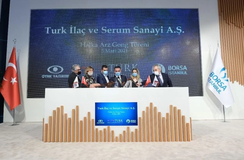 TURK İlaç ve Serum Sanayi A.Ş.’nin halka arzı, 5 Mart 2021 tarihinde düzenlenen ve Borsa İstanbul Genel Müdür Yardımcısı Dr. Korkmaz Enes Ergun, OYAK Yatırım Genel Müdürü Erkan Ünal, TURK İlaç ve Serum Sanayi A.Ş. Yönetim Kurulu Başkanı Mehmet Berat Battal, TURK İlaç ve Serum Sanayi A.Ş. Genel Müdürü Yunus Emre Battal, TURK İlaç ve Serum Sanayi A.Ş. Genel Müdür Yardımcısı Berna Sezer ve ekiplerinin katılım gösterdiği gong töreni ile gerçekleşti. 25-26 Şubat 2021 tarihinde gerçekleştirilen 10 TL sabit fiyatlı halka arza yerli ve yabancı yatırımcılar yoğun ilgi gösterdi. OYAK Yatırım liderliğinde gerçekleştirilen TURK İlaç ve Serum Sanayi A.Ş.’nin halka arzında son yıllarda halka arzlar arasında toplanan talep sayısı ile yeni bir rekora imza atıldı. Halka arz edilen şirket paylarının yüzde 40,9’u Yurt İçi Kurumsal Yatırımcılara, yüzde 35’i de Yurt İçi Bireysel Yatırımcılara ve yüzde 24,1’i ise Yurt Dışı Kurumsal Yatırımcılara tahsis edildi.