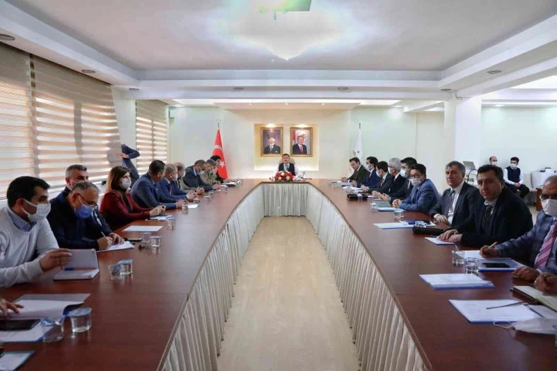 Iğdır’da 2022 yılı tarımsal kuraklık il yönetim toplantısı Vali H. Engin Sarıibrahim başkanlığında yapıldı.