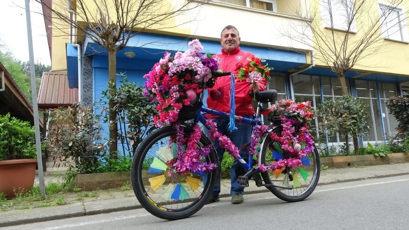 Çiçekler ile süslü bisikletinden vazgeçemiyor
