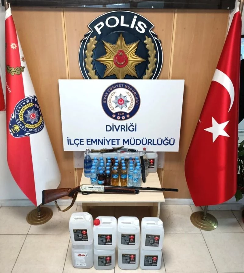 Edinilen bilgiye göre Sivas’ta kaçak ve sahte içkiye yönelik yapılan uygulama ve denetimler kapsamında polis tarafından Sivas’ın Divriği ilçesinde 2 adrese baskın düzenlendi. Düzenlenen baskınlarda 11 litre sahte rakı, 8 litre sahte viski ve 3 litre etil alkol ele geçirildi. Öte yandan adreslerde yapılan aramalarda sahte içki yapımında kullanılan malzemelerde bulundu. İki kişi gözaltına alındı. Haklarında adli işlem başlatıldı.