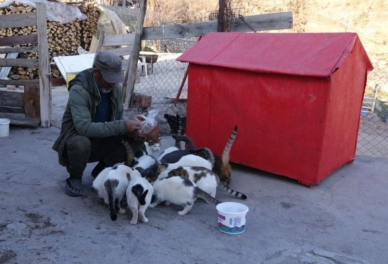 Tunceli’de 54 yaşındaki Latif Yalçın , 22 yıl önce bir kedi sahiplenmesiyle başladığı hayvan sevgisi büyüdü, şimdi 30’dan fazla hayvana bakmaya başladı.