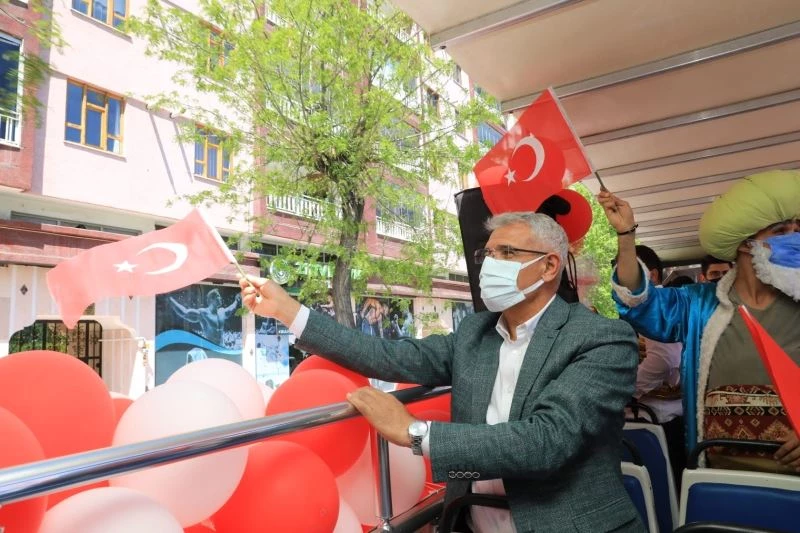23 Nisan Ulusal Egemenlik ve Çocuk Bayramı için özel bir programa imza atan Malatya’nın Battalgazi Belediyesi, rengarenk süslediği üstü açık tur otobüsüyle, korona virüs tedbirleri kapsamında bu yılda evlerinden çıkamayan çocukların bayramını kutladı.