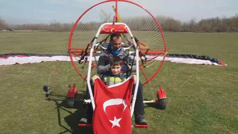 DÜZCE(İHA) – 23 Nisan Ulusal Egemenlik ve Çocuk Bayramı nedeni ile Düzce’de faaliyetlerini sürdüren Hava Sporları kulübü bu sefer çocuklar için havalandı. Paramotorla bulutların arasına çıkarılan çocuklar, bayram coşkusunu uçarak yaşadılar.