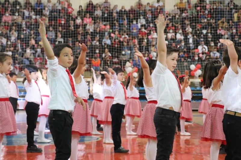 Işıkkent Spor Salonu'nda devam eden etkinliklerde, öğrenciler gösteriler yaptı, şiirler okudu.