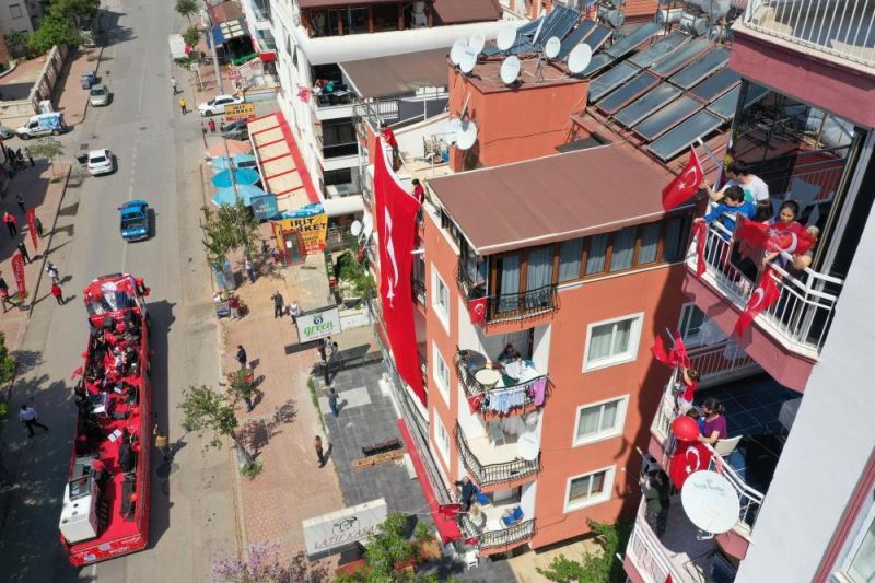 Kentte günler öncesinden hazirliklara baslayan çocuklar, evlerinin camlarina ve balkonlarina bayrak ve Atatürk posterleri asti. Balkonlardan bayrak sallayarak 23 Nisan siirleri okuyan çocuklar, renkli görüntüler olusturuyor.