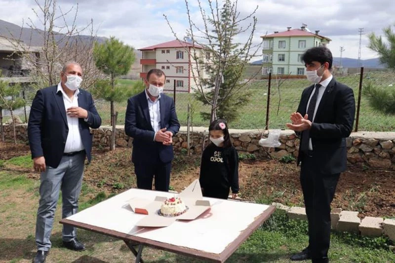Mut ilçesinde de 23 Nisan'da dogum günü olan 3 çocuga sürpriz yapildi. Mut Kaymakami Muammer Köken ilçedeki 3 çocugun dogum gününü kutladi. Kutlamalarda gerekli tedbirler alinip, sosyal mesafe kuralina uyuldu. Köken, 3 çocuga ve kardeslerine çesitli hediyeler verdi.