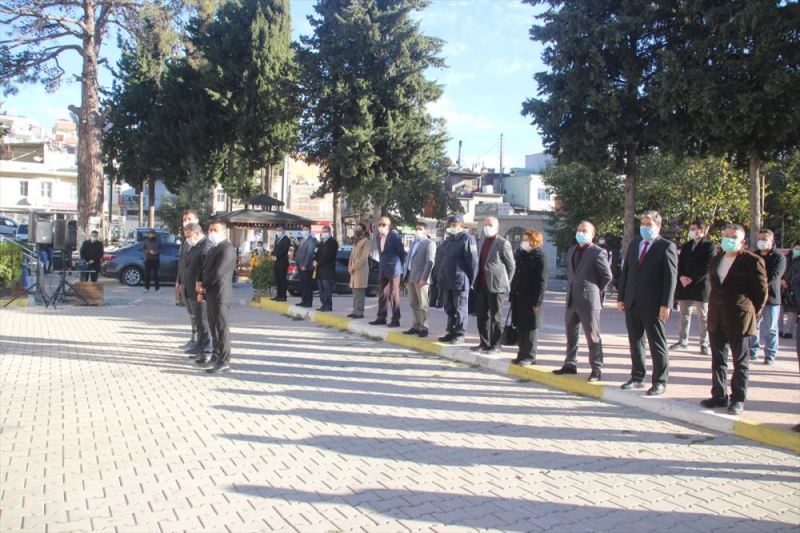Gülnar Hükümet Konağı önündeki törende İlçe Milli Eğitim Müdürü Hüseyin Kadim, Atatürk Anıtı'na çelenk sundu.