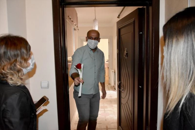 Belediye Baskani Osman Okumus'un ögretmenlere mesajini ileten ekipler, ögretmenlere gül ve hijyen seti hediye etti.