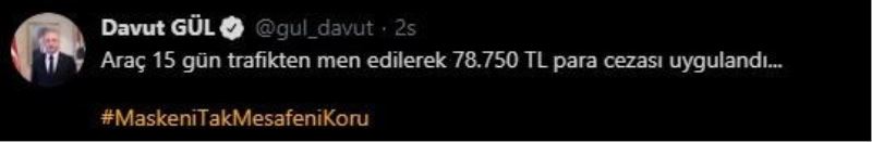 Vali Gül, yaptığı açıklamada, "Araç 15 gün trafikten men edilerek 78 bin 750 TL para cezası uygulandı" ifadelerini kullandı.