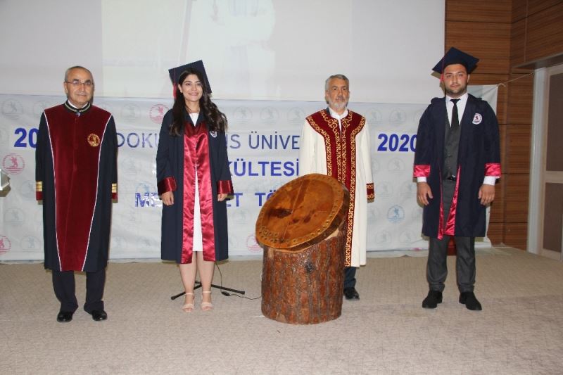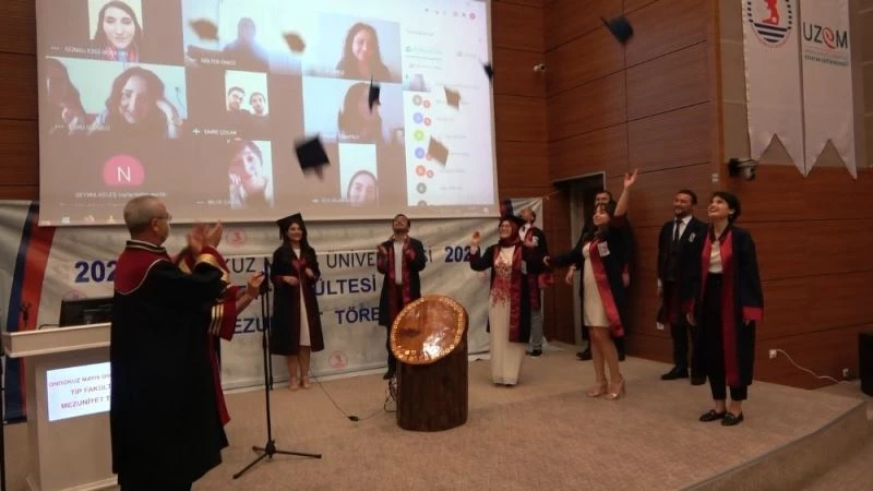 Mezun olan diğer öğrenciler ise törene online ortamda bağlanarak takip ettiler. Mezun öğrenciler törenin düzenlediği salon ve kendi katıldıkları yerlerden eş zamanlı olarak yeminlerini ederek mesleğe ilk adımlarını attılar. Keplerini havaya atarak sevinçlerini göstermeyi de ihmal etmediler.