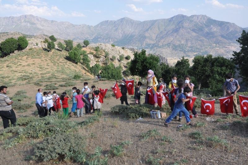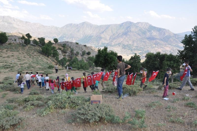Türk bayrakları ile tepeye çıkan vatandaşlar burada şehitleri anıp ’Kahrolsun PKK’ sloganları attı.