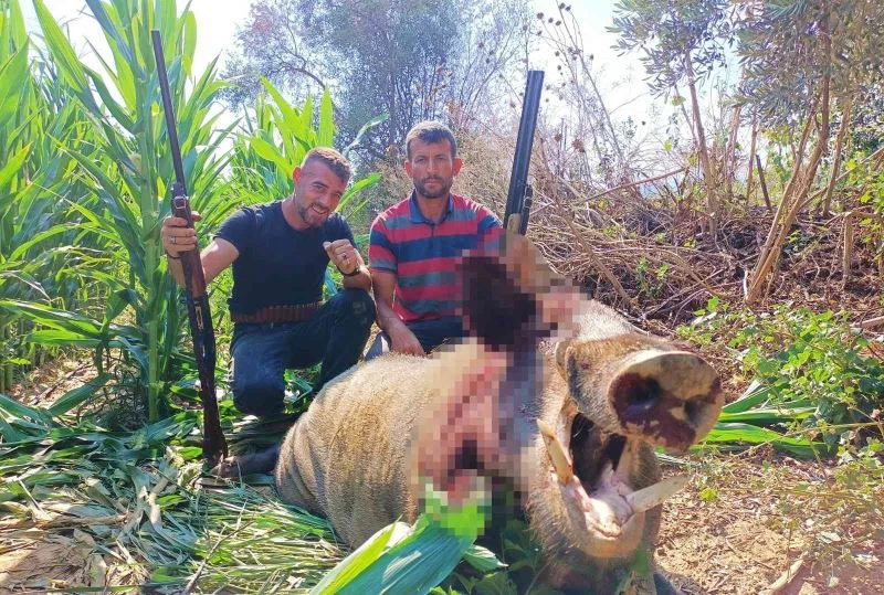 Aydın’ın Kuyucak ilçesi Yamalak Mahallesi’nde mısır tarlalarına büyük zarar veren yaklaşık 250 kilogram ağırlığındaki domuz, Doğa Koruma ve Milli Parklar (DKMP) Aydın Şube Müdürlüğünden alınan izin ile bölgedeki avcılar tarafından başlatılan sürek avıyla vuruldu.