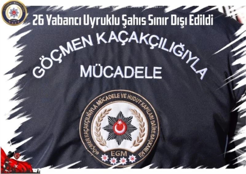 Edinilen bilgiye göre ; Nevşehir İl Emniyet Müdürlüğü Göçmen Kaçakçılığıyla Mücadele ve Hudut Kapıları Şube Müdürlüğü ekiplerince yapılan çalışmada; Derinkuyu İlçe Emniyet Müdürlüğünce haklarında ’Konut Dokunulmazlığının İhlali’, ’Kasten Yaralama’ ve ’Mala Zara Verme’ suçlarından adli işlem yapılan 8, ’mala zarar verme’, ’tehdit’ ve ’hakaret’ suçlarından adli işlem yapılan 18 yabancı toplan 26 şahıs adli işlemleri sonrasında, Nevşehir İl Göç İdaresi Müdürlüğünce alınan kararlar doğrultusunda İl Jandarma Komutanlığı ile koordineli olarak Gaziantep GGM’ye sınır dışı edilmek üzere teslim edildi.