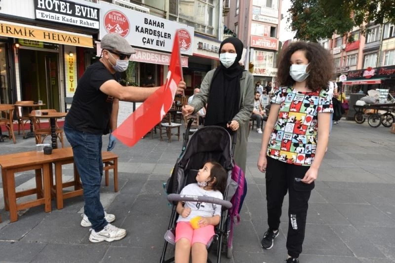 Karesi Belediyesi, 29 Ekim Cumhuriyet Bayramı kutlamaları kapsamında vatandaşlara şanlı Türk Bayrağı hediye etti.