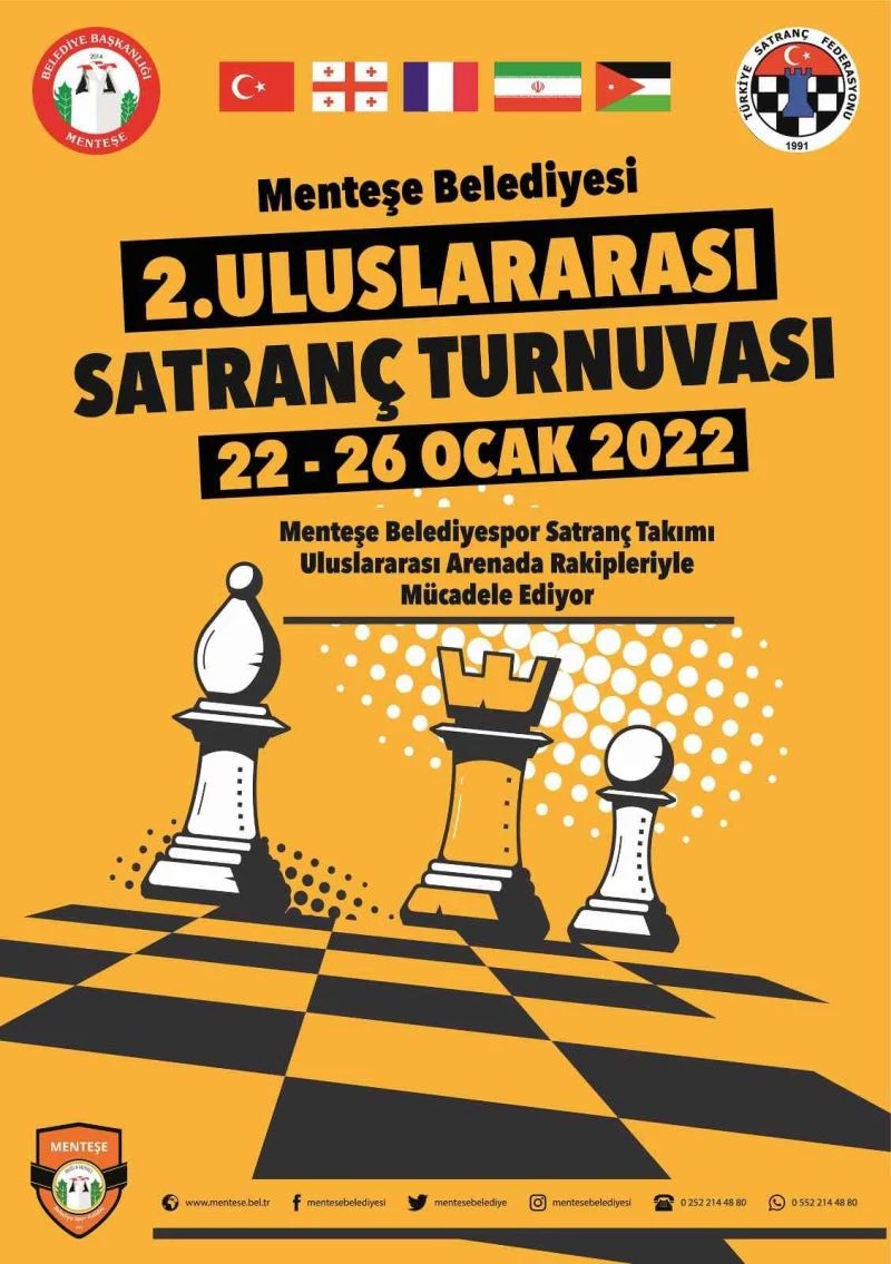 Menteşe Belediyesi ve Türkiye Satranç Federasyonu Menteşe Satranç İl Temsilciği tarafından düzenlenen 2. Uluslararası Satranç Turnuvası 22 Ocak 2022 Cumartesi günü başlıyor. Menteşe Belediye Başkanı Bahattin Gümüş’ün hamlesiyle başlayacak müsabakalarda Menteşe Belediyespor satranç sporcuları Fransa, Gürcistan, İran ve Ürdün’den turnuvaya katılacak satranç sporcuları ile karşılaşacak. Müsabakalar 5 gün sürecek.