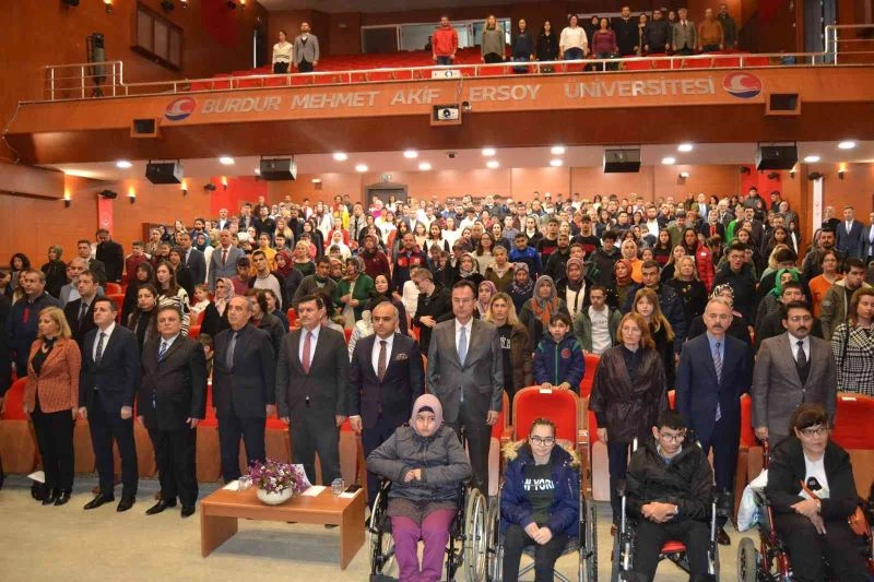 3 Aralık Dünya Engelliler Günü etkinlikleri çerçevesinde Mehmet Akif Ersoy Üniversitesi Konferans ve Sergi Salonunda kutlama programı düzenlendi. Programa Burdur Valisi Ali Arslantaş, Cumhuriyet Başsavcısı Osman Kara, Belediye Başkan Yardımcısı Hasan Duygulu, İl Milli Eğitim Müdürü Nesrin Kakırman, İl Emniyet Müdürü Ümit Bitirik, İl Jandarma Komutanı Albay Mustafa Güder ile engelli öğrenciler ve aileleri katıldı.