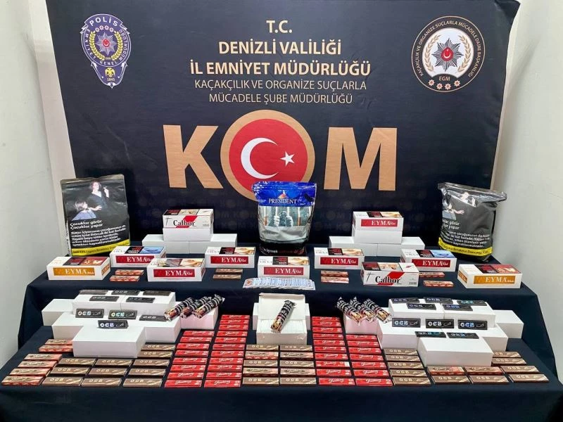 Denizli’de tütün ve çeşitli eşya kaçakçılarına yönelik 3 ayrı operasyon düzenlendi. Operasyonlar kapsamında 2 şüpheli gözaltına alındı. Yapılan aramalarda ise 6 bin 860 adet dolma sigara, 7 bin adet makaron, 6 kilo 100 gram kıyılmış tütün, 134 adet sigara yan ürünü, 590 adet cinsel içerikli kaçak ürün, çok sayıda değişik marka ve modelde kaçak cep telefonu ve cep telefonu aksesuarları ele geçirildi.