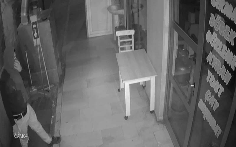 Öte yandan şüphelinin büfeye giriş ve çıkış ile hırsızlık anları güvenlik kameraları tarafından saniye saniye görüntülendi. Rahat tavırlarıyla dikkat çeken şahıs, taş yardımıyla kapı camını kırarak, içeri giriyor. İçerde hızlı bir şekilde içki ve sigaraları poşete dolduran şahıs, ardından dükkana girdiği yerden çıkarak, bölgeden uzaklaşıyor.