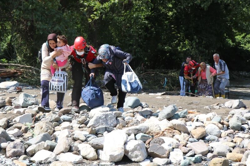 3 günlük bekleyişin ardından sel bölgesinden kurtarılan vatandaşlar, “3 gündür bekliyoruz. Başımız çok ağrıyor, uykusuzuz. Burada yaşanılanlar görünüyor. Allah razı olsun. Devletimiz şu anda bizi kurtardı. Elektrik, su ve yiyeceğimiz yoktu. Her yer sular altında kaldı. Kurtarıldığımız için mutluyuz” dedi.