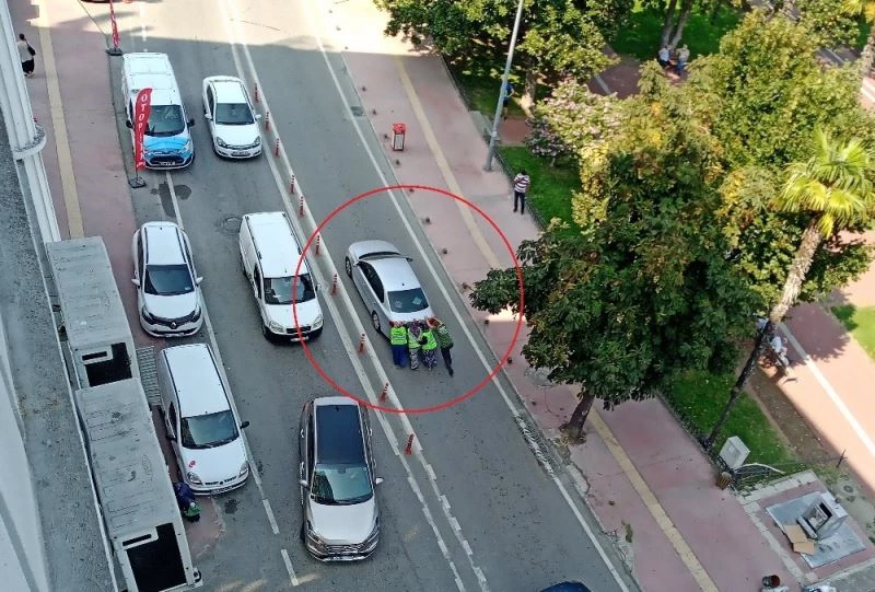 Samsun’da otomobili istop ederek trafikte kalan sürücünün yardımına parklarda çiçeklendirme işlerinde çalışan kadınlar koştu.
