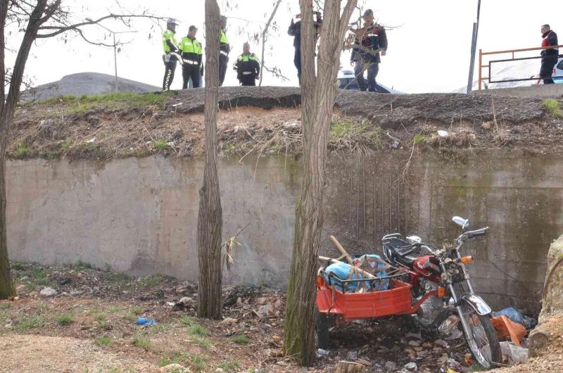 3 metrelik boşluğa düşen motosikletteki karı-koca yaralandı