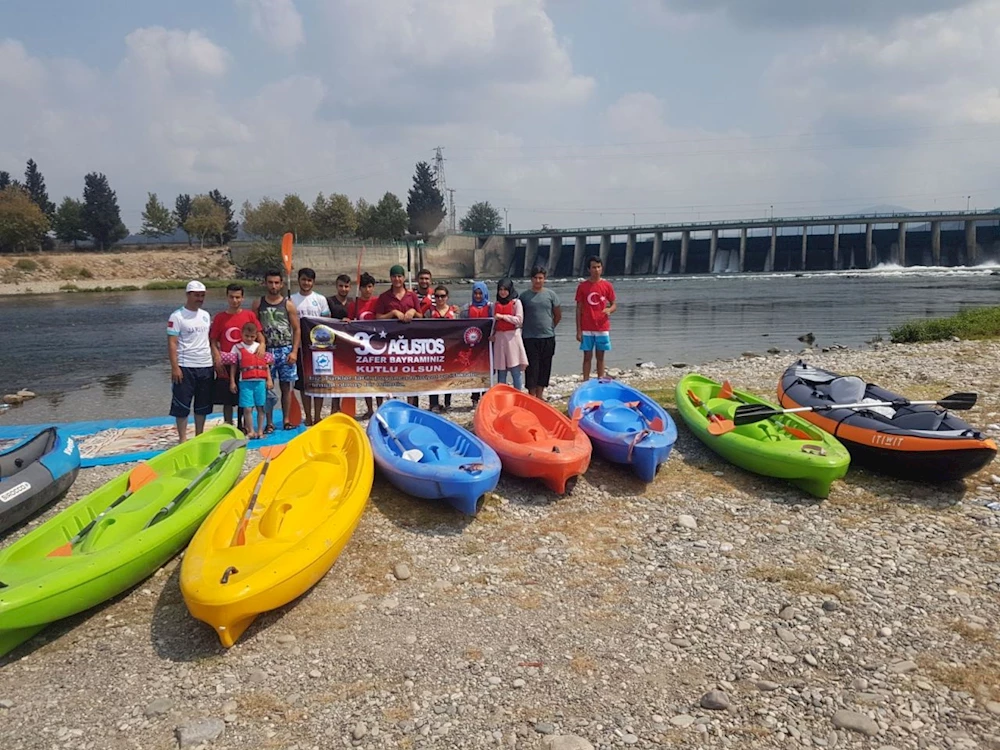 Osmaniye Korkut Ata Gençlik, Spor ve Doğa Derneği üyeleri, 30 Ağustos Zafer Bayramı için Cevdetiye Beldesi`nden başlayıp Ceyhan Nehri üzerinden Yeniköy Köyü piknik alanına kadar olan 15 kilometrelik güzergahta kano safari etkinliği yaptı. Türk Bayrağı baskılı tişörtler giyen 26 katılımcı, 13 kano ile yarım saat süren etkinlik sonunda "30 Ağustos Zafer Bayramınız Kutlu Olsun" yazılı pankartı açtı. Dernek Başkanı Murtaza Çil, 2008 yılında kurulduklarını belirterek mevsimlere göre bir çok doğa aktivitesi düzenlemekte olduklarını söyledi. 6 yıldır kano safari etkinliklerini aktif olarak yaptıklarını söyleyen Başkan Çil, bir çok gencin malzeme eksikliğinden dolayı bu tür programlara katılamadığını, bundan dolayı bölgede ki iş adamlarında malzeme desteği beklediklerini söyledi. Murtaza Çil, gençlerin zamanını sporla meşgul ederek, kotu alışkanlıklardan uzak tutan doğa sporlarına destek olunmasını istedi. Çil, "Dönemin şartları içerisinde askeri kuvvetlerimizden kat kat üstün bir ordu karşısında kazanılan Başkomutanlık Savaşı ile milletimiz birlik ve beraberliğinden, hürriyet ve istiklalinden en zor koşullarda dahi vazgeçmeyeceğini adeta tüm dünyaya haykırmıştır. Allah bize Kurtuluş savaşları yaşatmasın. Bu etkinliğimizi Kurtuluş savaşında canını ortaya koyan aziz şehitlerimiz ve kahraman gazilerimize armağan ediyoruz." dedi. Haber: İbrahim EMÜL/OSMANİYE
