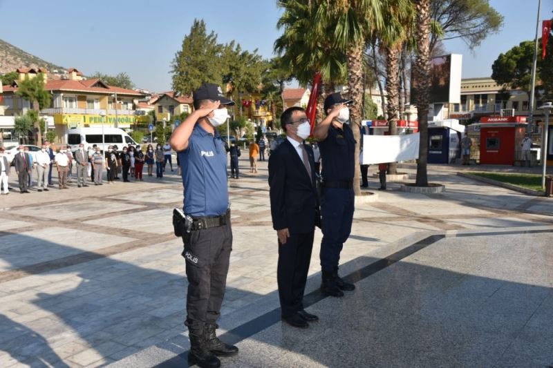 30 Ağustos Zafer Bayramı Milas’ta düzenlenen programla kutlandı. Milas Kaymakamı Eren Arslan, CHP Muğla Milletvekili Suat Özcan, Milas Garnizon Komutanı Albay Emel Demiryakan, Milas Belediye Başkanı Muhammet Tokat, Milas Cumhuriyet Başsavcısı Hayrullah Yapar, siyasi parti ve sivil toplum örgütü temsilcileri ve Türkiye Muharip Gaziler Derneği Milas Şubesi üyelerinin katılımıyla Atatürk Anıtı önünde gerçekleşen törende çelenk sunulup saygı duruşunda bulunularak İstiklal marşımız okundu.