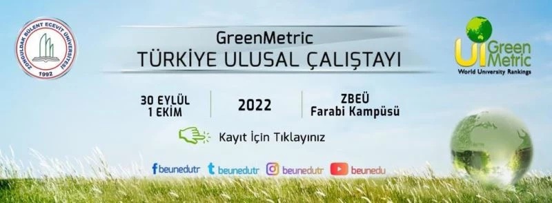 Dünya üniversitelerini çevreci uygulamalar ve sürdürülebilirlik açısından değerlendiren GreenMetric (Yeşil Ölçüm) Türkiye Ulusal Çalıştayı, 30 Eylül-1 Ekim tarihleri arasında Zonguldak Bülent Ecevit Üniversitesi ev sahipliğinde gerçekleşecek. Türkiye’nin en çevreci kampüslerinden biri olan Zonguldak BEÜ Farabi Kampüsü’nde düzenlenecek Ulusal UI GreenMetric Çalıştayı ile yükseköğretim kurumlarında çevre ve sürdürülebilirlik konuları ele alınacak.