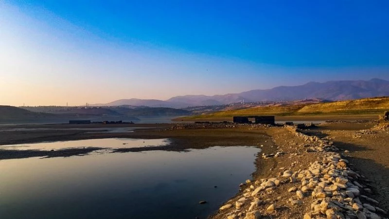 Kahramanmaraş’ta Sır Barajı’nda suyun çekilmesinin ardından, 30 yıl önce sular altında kalan mahalle fotoğraf meraklıların uğrak yeri oldu.
