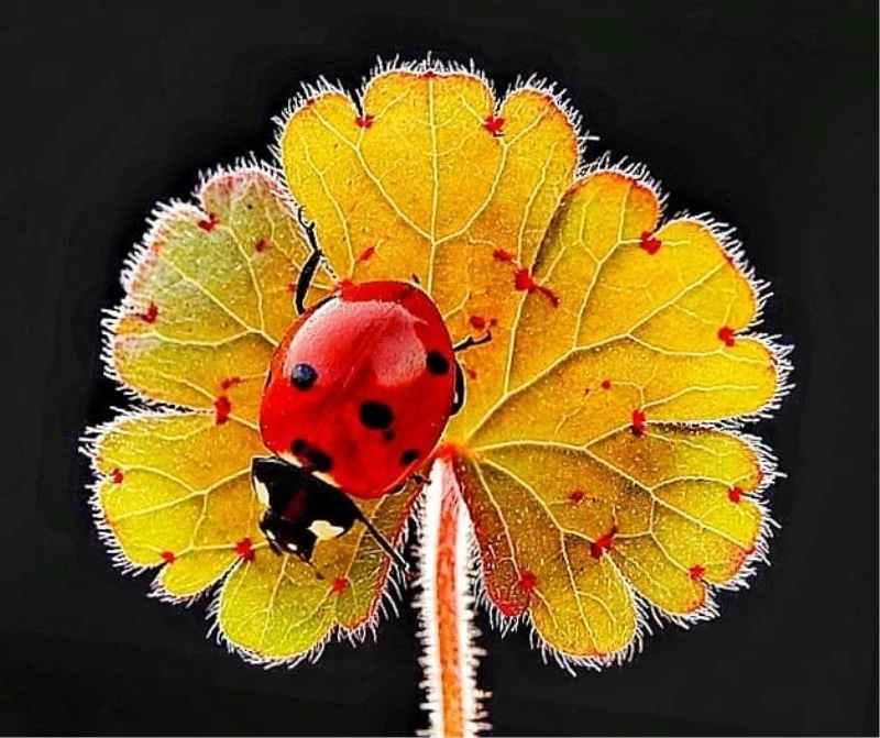 Kahramanmaraş’ta doğa fotoğrafçısı Yasin Mortaş, 30 yıldır uğur böceği fotoğrafları çekiyor.