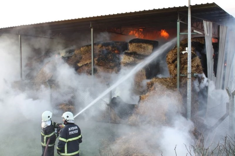 Edinilen bilgiye göre, Turanlar Mahallesi’nde Mete K.’ya ait besi çiftliğinde sabah saatlerinde yangın çıktı. İhbar üzerine bölgeye Aydın Büyükşehir Belediyesi itfaiye ekipleri sevk edildi. 4 arazöz ve 3 iş makinesi ile yangına müdahal eden ekipler alevleri söndürmek için yoğun çaba sarf etti. Çıkan yangın nedeniyle korku dolu anlar yaşanırken yangında 2 traktör ve yaklaşık 300 ton yem ve saman balyası zarar gördü.