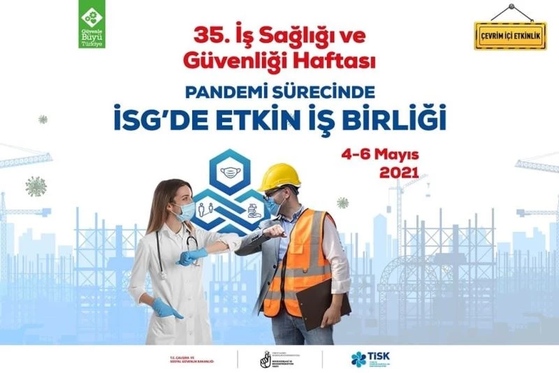 35. İş Sağlığı ve Güvenliği Haftası’nın teması “Pandemi Sürecinde İSG’ de Etkin İşbirliği” olacak. Etkinlikler, Türkiye İşveren Sendikaları Konfederasyonu (TİSK) ve Mikrocerrahi ve Rekonstrüksiyon Vakfı işbirliğinde gerçekleştirilecek. “Pandeminin İSG Çerçevesinde Çalışma Hayatına Etkileri”, “İSG’de Etkili İletişim”, “İSG’de Bilişim Uygulamaları”, “Acil Durum Yönetimi”, “İş Sağlığı ve Güvenliği Hukuku”, “Kamuda İSG”, “İSGGM’nin Vizyonu”, “İş Sağlığı ve Meslek Hastalıkları”, “İş Sağlığı ve Güvenliğinde Teknik Yaklaşım ve Yöntemler”, “Pandemide Güçlü İşbirliği ve İyi Uygulamalar” başlıklı oturumlarda uzman kurum ve kuruluşların temsilcileri bir araya gelecek. Ayrıca uluslararası iş sağlığı ve güvenliği otoritelerinden yöneticilerin konuk olacağı “Küresel Zorluklar, Küresel Çözümler: Pandemide İşyerlerinde Sağlık ve Güvenliğin Tesis Edilmesi” başlıklı uluslararası bir panel gerçekleştirilecek.